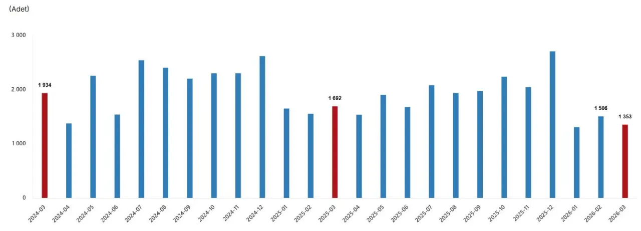 - Mart ayında yabancıya satış: 1.353 (-%20)