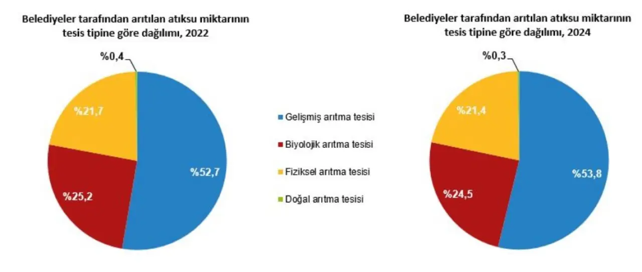 2024’te belediye nüfusunun %92,8’i kanalizasyon şebekesine erişti. Toplam 5,8 milyar m³ atıksu kanalizasyonla toplanarak deşarj edildi: