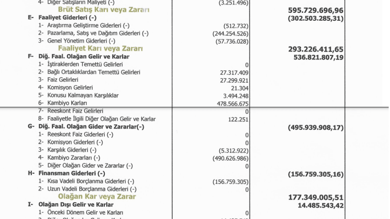 FinansTaksi Borsa ve Yatırım GUBRF: Gübretaş Gelir Tablosu Kar Yazdı