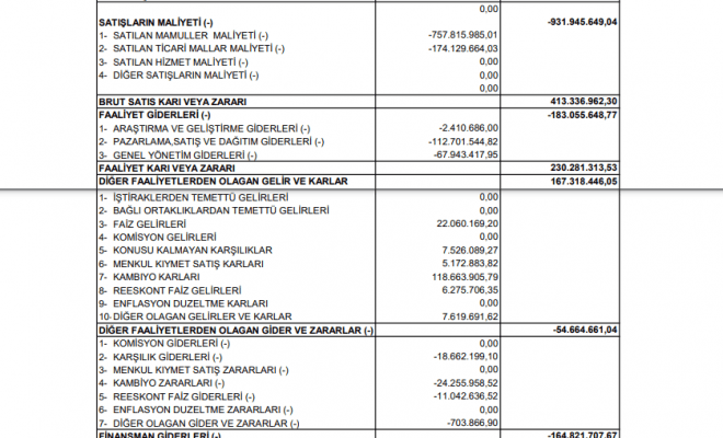 BRUT SATIS KARI VEYA ZARARI 413.336.962,30
