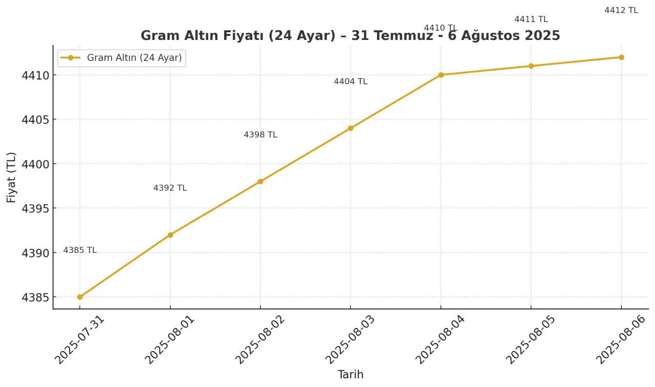 - 24 ayar gram altın, sabah saatlerinde 4.412 TL seviyesine yükseldi. Son günlerde dar bantta sıkışan fiyatlar, hafif yukarı yönlü ivme kazandı.