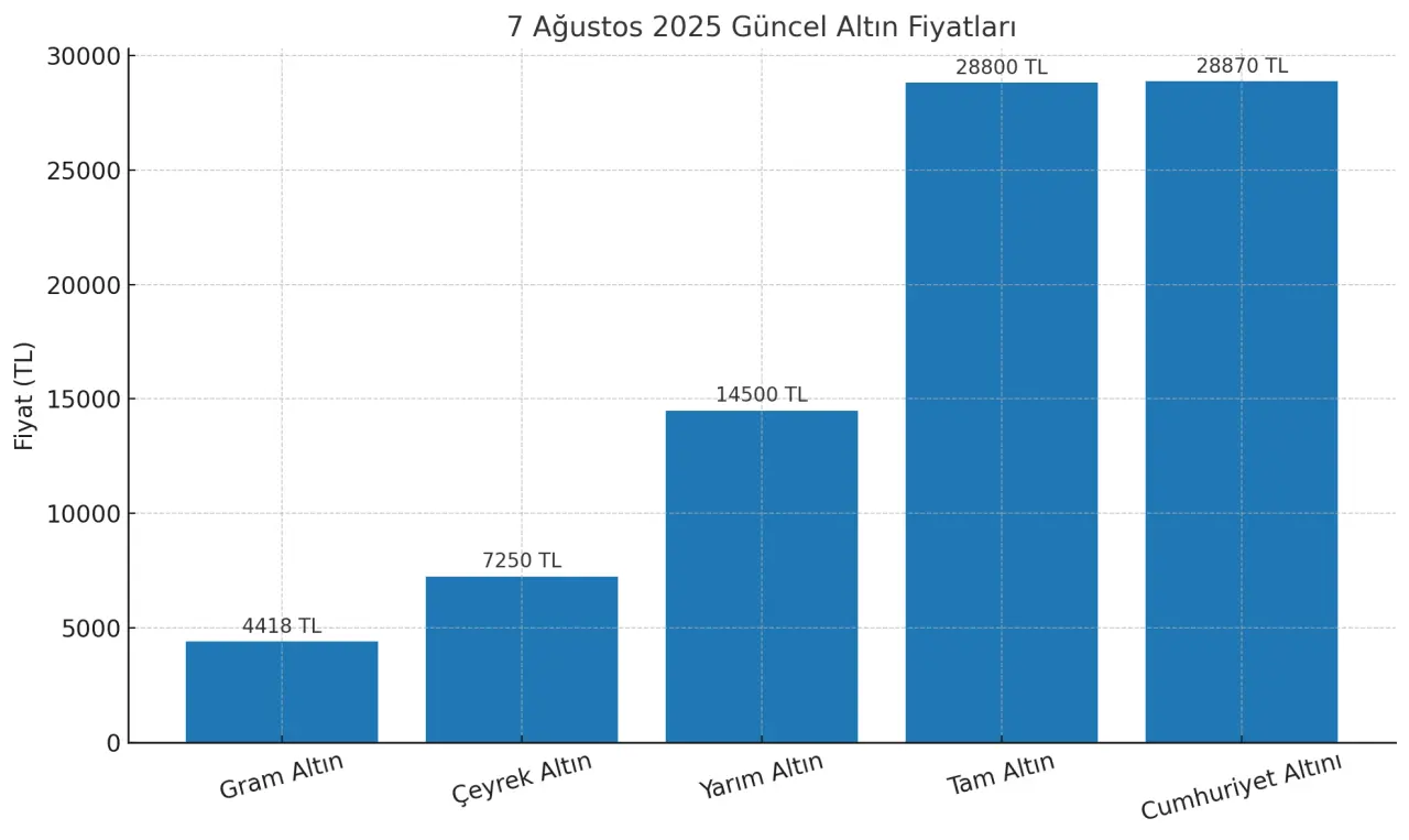 Altın piyasası 7 Ağustos sabahına yukarı yönlü bir hareketle başladı. Küresel piyasalarda artan belirsizlik ve faiz indirim beklentileri, güvenli liman talebini yeniden ön plana çıkardı. Gram altın fiyatı 4.400 TL’nin üzerinde kalıcılaşırken, çeyrek ve Cumhuriyet altınında da değer kazanımı dikkat çekiyor.