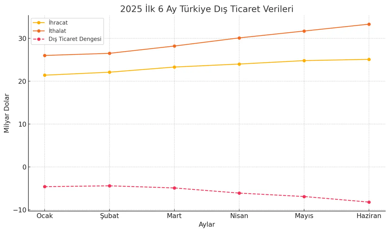 Yaz aylarının başında sanayi ve tarımda görülen üretim artışları, ekipman ve ara malı ihtiyacını artırarak ithalatı tetikledi. Buna karşılık ihracat, küresel talepteki yavaşlamanın etkisiyle ivme kaybetti.