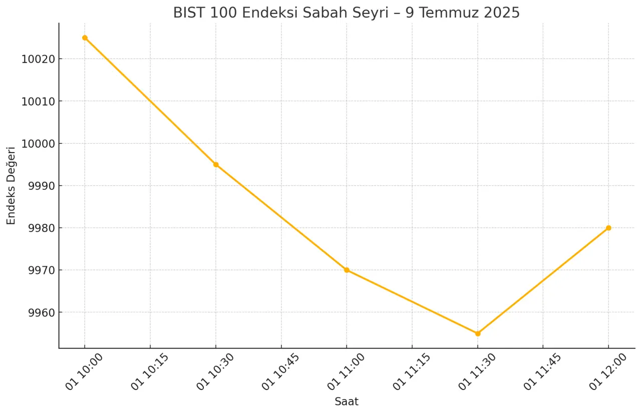9 Temmuz 2025 Çarşamba sabahında Borsa İstanbul, güne zayıf bir açılışla başladı. BIST 100 endeksi, seansın ilk saatlerinde 10.025 puandan açıldıktan sonra 10.000 puanın altına sarktı. Küresel piyasalardaki belirsizlik ve yurtiçindeki temkinli görünüm, endeks üzerinde baskı oluşturdu.