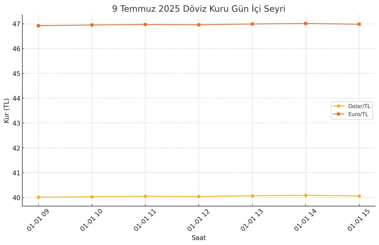 Döviz piyasalarında 9 Temmuz 2025 sabahı itibarıyla hareketlilik dikkat çekiyor. Dolar kuru 40 TL seviyesinin üzerine yerleşirken, Euro kuru da 47 TL sınırına dayandı. Kur üzerindeki yukarı yönlü baskı, hem küresel gelişmelerin hem de iç siyasi belirsizliklerin etkisiyle artış gösteriyor