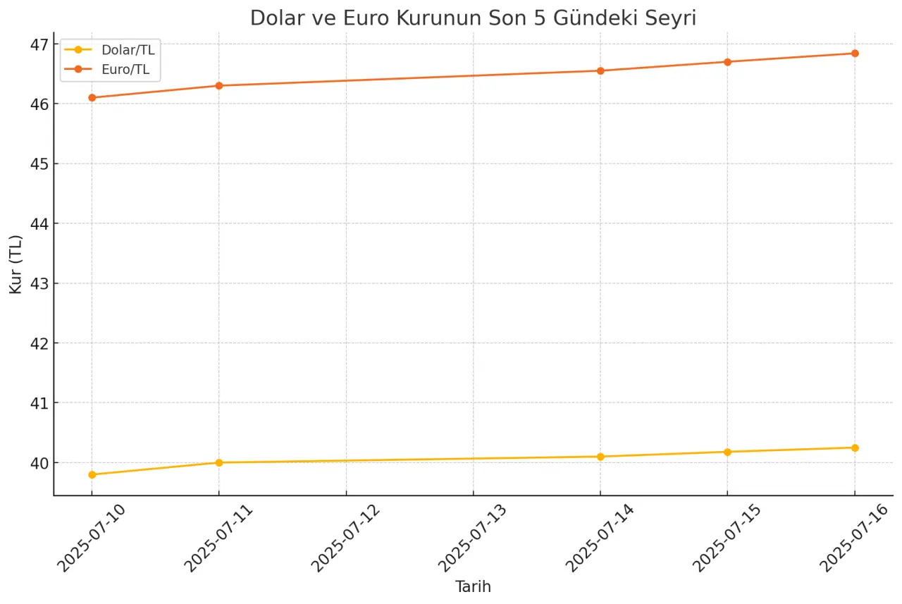 16 Temmuz 2025 sabahında döviz kurları güne yükselişle başladı. Dolar 40,25 TL, euro ise 46,84 TL seviyelerinden işlem görüyor. Türk lirası üzerindeki baskı devam ederken, yatırımcılar Merkez Bankası’nın olası adımlarına ve küresel piyasalardaki gelişmelere odaklanmış durumda