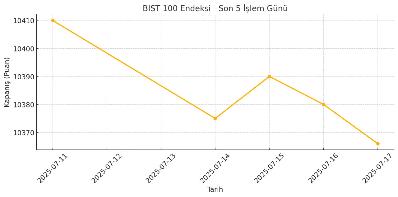 21 Temmuz 2025 Pazartesi günü itibarıyla Borsa İstanbul, yeni haftaya sınırlı bir geri çekilme ile giriş yaptı. BIST 100 endeksi, haftanın ilk işlem gününde 10.366 puan seviyesinde kapanarak hafif negatif bir seyir izledi. Piyasalarda yön arayışı sürerken, yatırımcılar belirsizlik ortamında temkinli pozisyon almayı sürdürüyor.