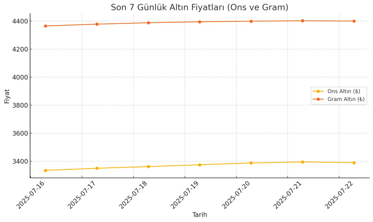 Altın piyasaları yeni haftaya güçlü bir görünümle başladı. Uluslararası piyasalarda ons altın sabah saatlerinde 3.390 dolar seviyelerine ulaşarak son bir ayın en yüksek düzeyine tırmandı. Türkiye iç piyasasında ise gram altın 4.400 TL seviyesinde işlem görüyor. Bu yükselişin arkasında yatan temel dinamikler; zayıflayan dolar, ABD tahvil getirilerindeki geri çekilme ve küresel piyasalarda jeopolitik tansiyonun yeniden yükselmesi olarak öne çıkıyor. Yatırımcılar, hem enflasyona karşı koruma arayışı hem de merkez bankalarının atacağı adımlara karşı pozisyonlarını yeniden şekillendiriyor.