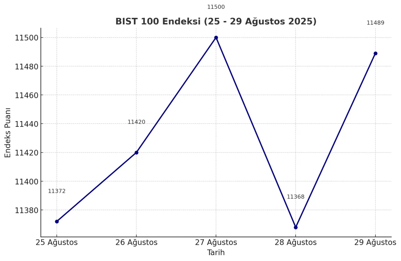 29 Ağustos 2025 sabahında BIST 100 endeksi, güne hafif artışla başladı. Açılışta endeks 11.489 puan seviyesine yükselerek önceki kapanışa göre sınırlı da olsa pozitif bir seyir izledi. Bu hareket, yatırımcıların haftanın son işlem gününe temkinli ama iyimser bir tutumla girdiğini gösteriyor.