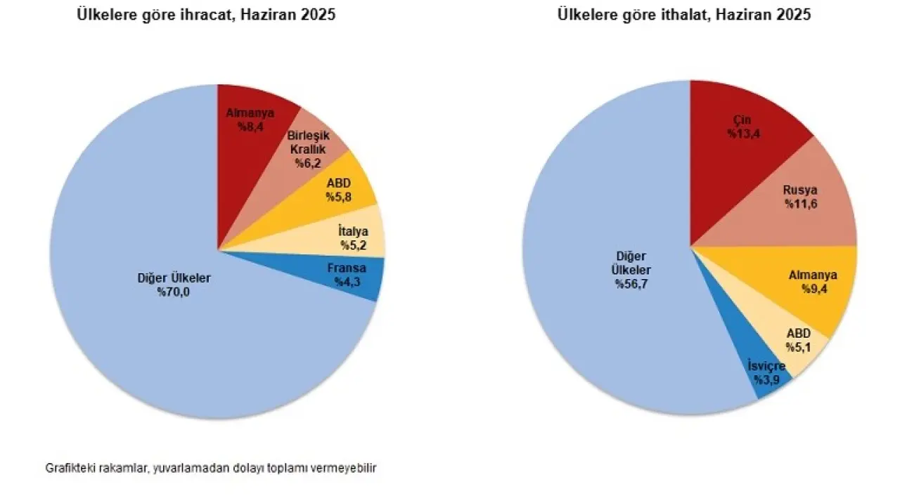 Türkiye'nin dış ticaretinde Haziran 2025 itibarıyla dengeler ithalat lehine bozuldu. Türkiye İstatistik Kurumu (TÜİK) ve Ticaret Bakanlığı tarafından yayımlanan geçici verilere göre, Haziran ayında ihracat yüzde 7,9 artışla 20 milyar 515 milyon dolar olurken, ithalat yüzde 15,2 artışla 28 milyar 688 milyon dolara ulaştı. Dış ticaret açığı ise yüzde 38,8 artarak 8 milyar 173 milyon dolara yükseldi.