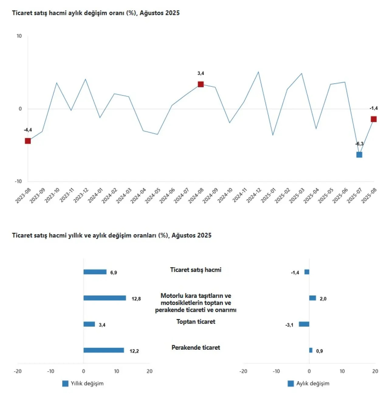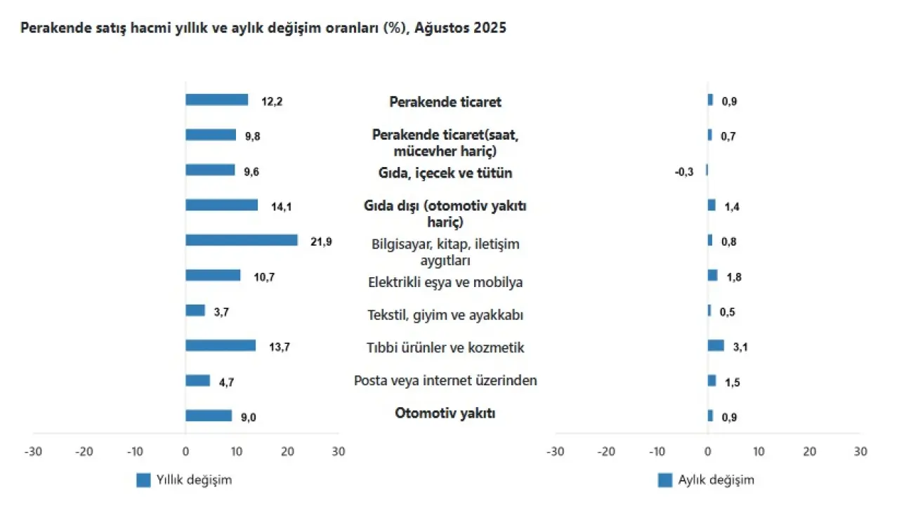 Ağustos ayında motorlu kara taşıtları ve motosikletlerin toptan ve perakende ticareti ile onarımı alt grubunda satış hacmi yıllık %12,8 arttı. Bu yükselişte, araç kampanyaları, filo yenilemeleri ve kredi koşullarında dönemsel esneklik etkili oldu. Bununla birlikte, sektör temsilcileri araç fiyatlarındaki yüksek seyrin ve faiz oranlarının önümüzdeki dönemde satış ivmesini sınırlandırabileceğine dikkat çekiyor.