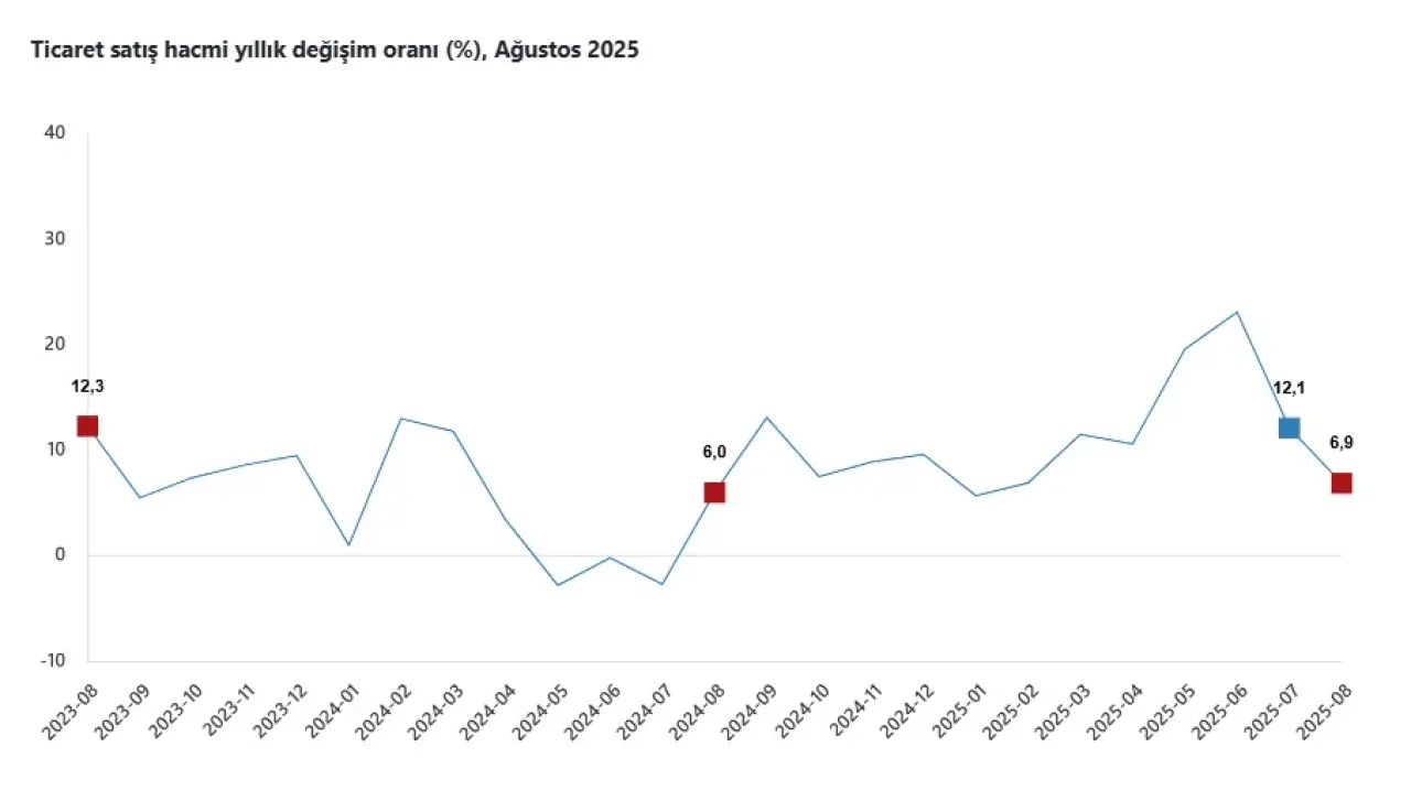 Türkiye ekonomisinin iç talep ve ticaret temposunu yansıtan Ticaret Satış Hacim Endeksi, 2025 yılı Ağustos ayında karışık bir görünüm sergiledi. TÜİK verilerine göre, toplam ticaret satış hacmi yıllık bazda %6,9 artarken, aylık bazda %1,4 azaldı. Bu tablo, perakende tarafında canlılığın devam ettiğini ancak toptan ticarette sınırlı bir durgunluğun başladığını ortaya koydu.