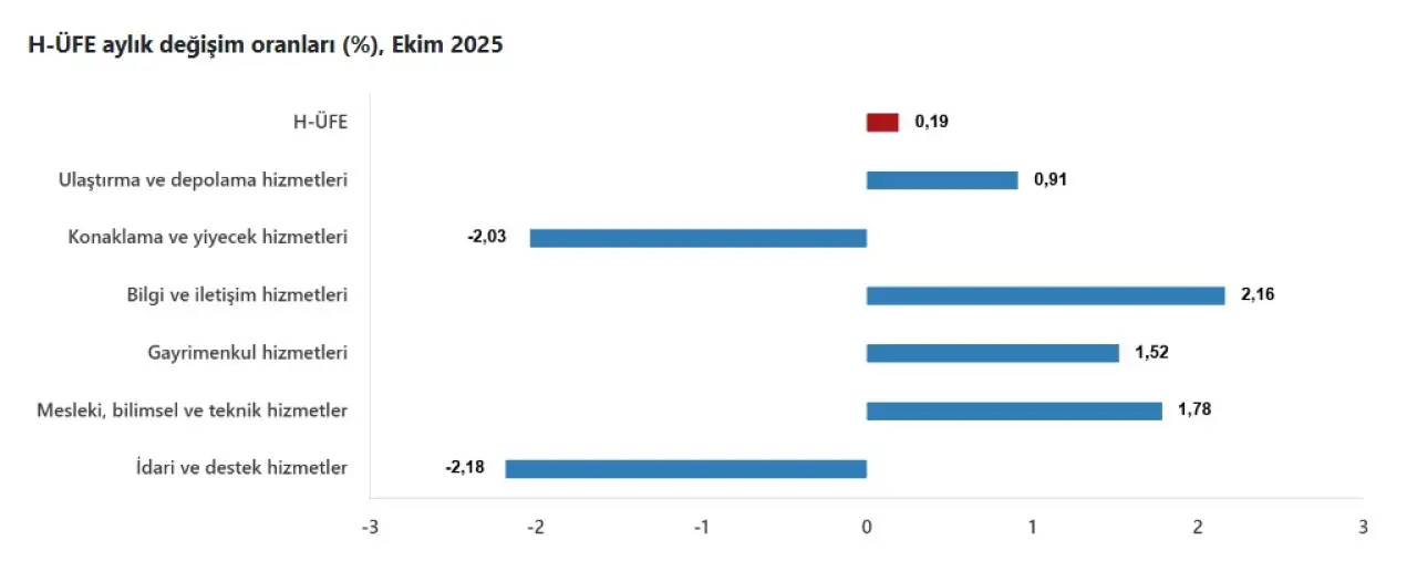 Türkiye İstatistik Kurumu (TÜİK), Ekim 2025 dönemine ilişkin Hizmet Üretici Fiyat Endeksi (H-ÜFE) verilerini yayımladı. Endeks, hizmet sektöründeki fiyat hareketlerini ortaya koyan önemli göstergelerden biri olarak bu ay sınırlı bir aylık artışa karşın yüksek yıllık yükseliş eğilimini sürdürdü. Mevsim etkilerinden arındırılmadan hesaplanan H-ÜFE, Ekim ayında aylık bazda yüzde 0,19, yıllık bazda ise yüzde 34,85 oranında arttı. Endeksin Aralık 2024’e göre artışı yüzde 35,02, on iki aylık ortalamalara göre artışı ise yüzde 38,96 olarak gerçekleşti.