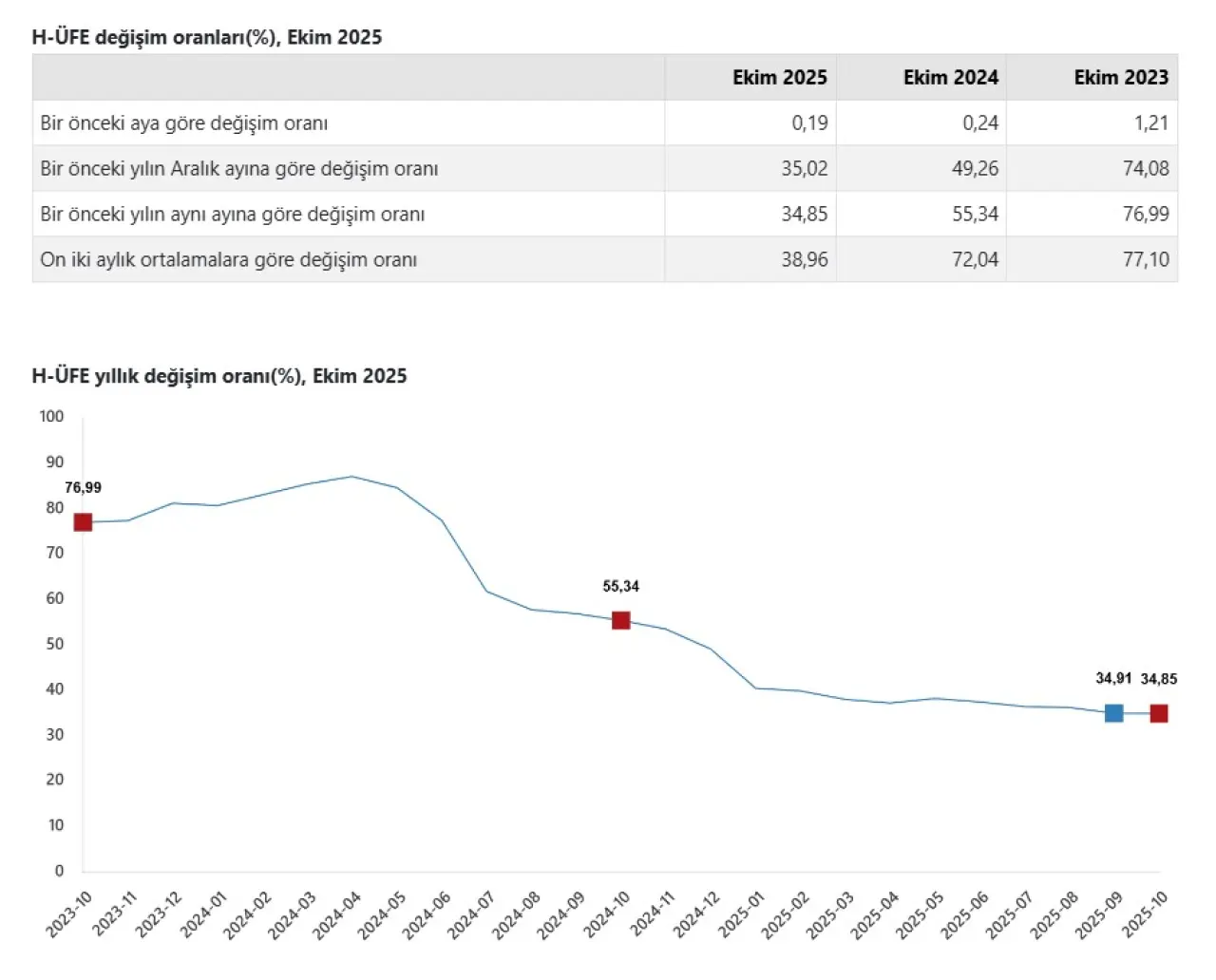 - Ekim 2025 yıllık artış: Yüzde 34,85