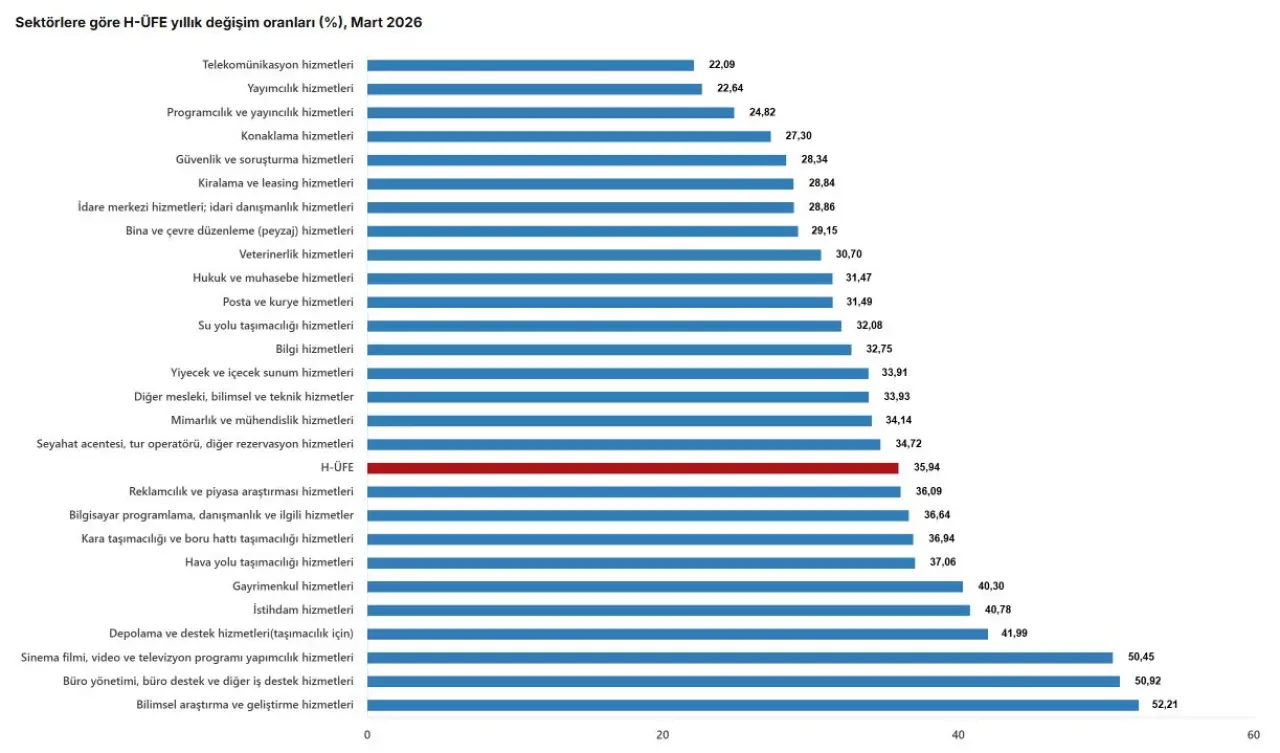 Bu dağılım, hizmet sektöründe maliyet artışlarının geniş tabana yayıldığını gösteriyor.