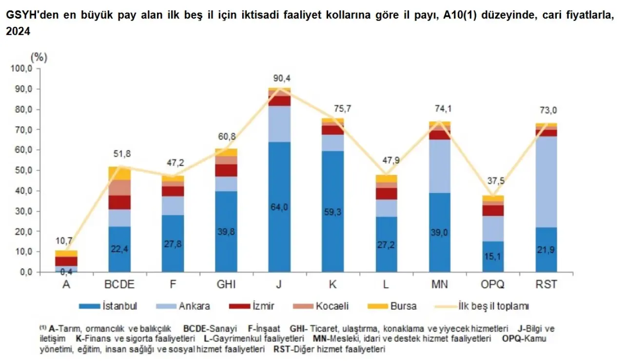 En yüksek paya sahip ilk beş il, Türkiye GSYH’sinin %53’ünü oluşturdu.