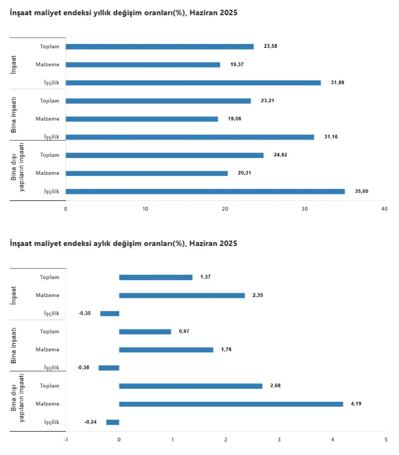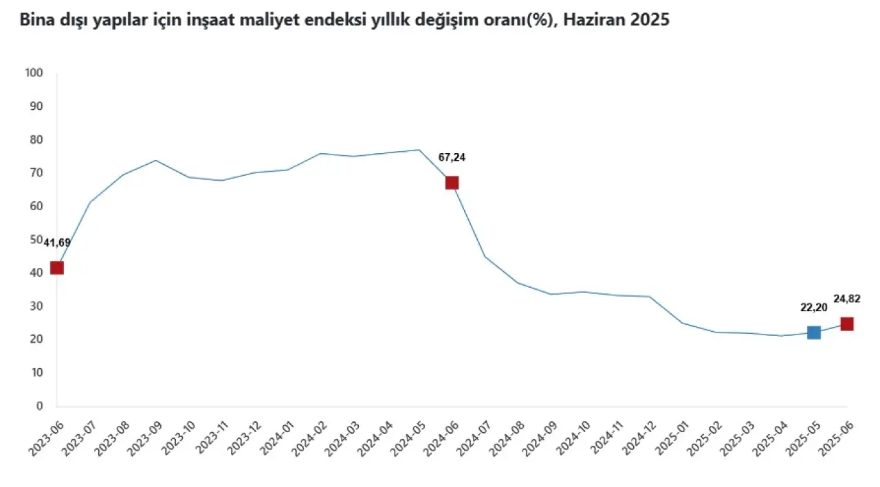 İnşaat maliyetleri Haziran 2025’te yıllık yüzde 23,58 arttı