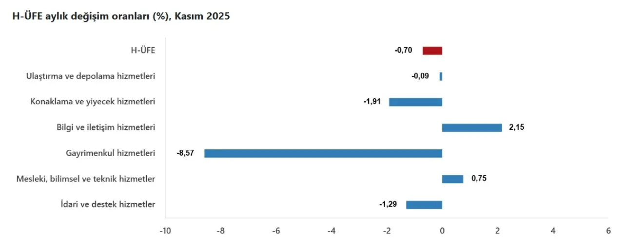 Özellikle gayrimenkul hizmetlerindeki aylık bazlı sert düşüş, genel endekste yaşanan gerilemenin ana belirleyicisi oldu.