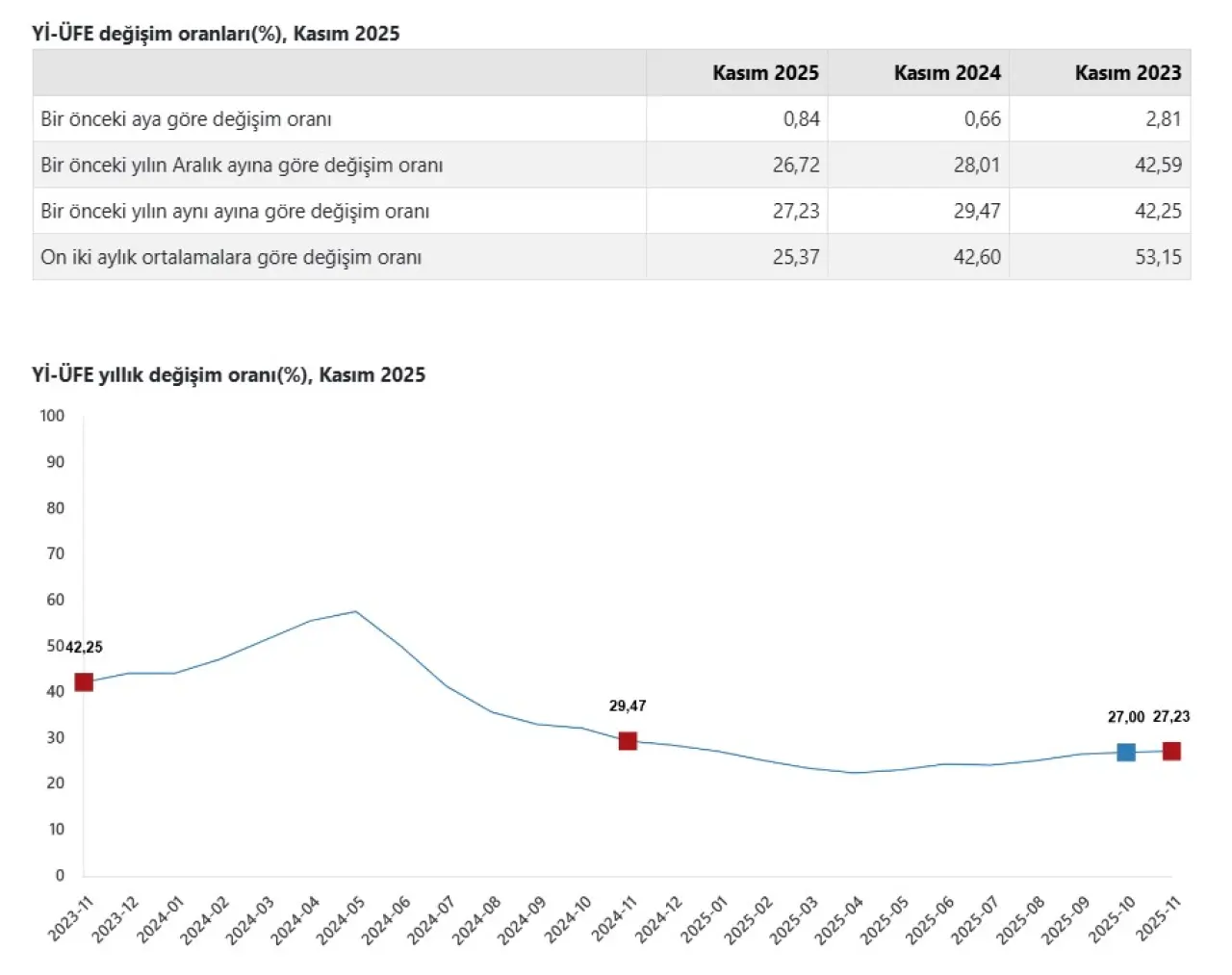 Kasım ayı Yİ-ÜFE açıklandı: Yıllık artış %27,23