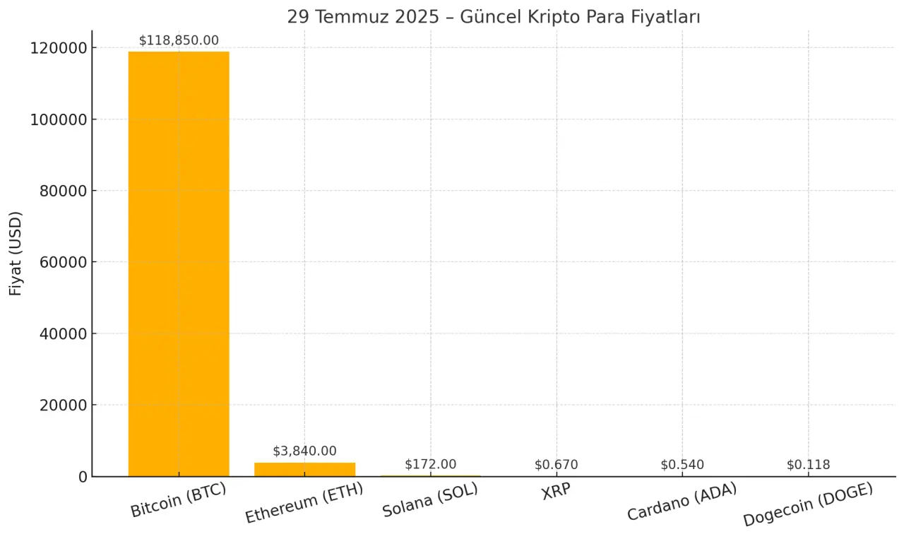 Kripto para piyasası 29 Temmuz sabahına yön arayışı içinde başladı. Bitcoin yatay ve sıkışık bir görünümde; Ethereum ise güçlü direnç seviyelerinde duraksamış durumda. Altcoinler zayıf seyrediyor. Bugün yatırımcıların gözü teknik seviyelerde ve potansiyel makroekonomik açıklamalarda olacak. Piyasanın yeniden ivme kazanabilmesi için Bitcoin’in 119.500 USD üzerine, Ethereum’un ise 4.000 USD eşiğini aşması gerekiyor.