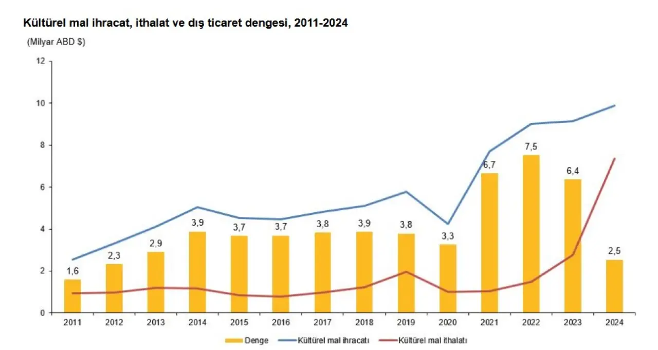 Bu veriler, Türkiye’nin kültürel üretimde uluslararası rekabetçiliğini artırmaya başladığını ancak teknoloji ve telif odaklı ürünlerde ithalat baskısının sürdüğünü gösteriyor.