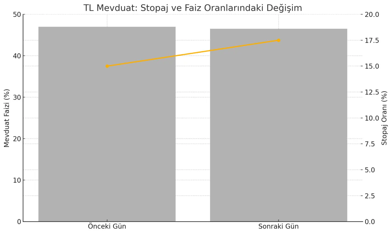 Bankacılık Düzenleme ve Denetleme Kurumu (BDDK) verilerine göre, 4 Temmuz haftasında standart TL mevduatların toplam mevduattaki payı yüzde 59,21’e yükselmişti. Bu oran, 19 Mart’taki siyasi gerilim sonrası gerilediği yüzde 57,43’lük seviyenin üzerine çıkarak TL’ye olan ilginin yeniden arttığını göstermişti. Ancak alınan kararlar bu eğilimi tersine çevirebilir. Aynı hafta içerisinde standart TL mevduat hacmi 424 milyar TL azalarak 13 trilyon 364 milyar TL’ye indi. Toplam mevduat ise 563 milyar TL düşerek 22 trilyon 568 milyar TL seviyesine geriledi.