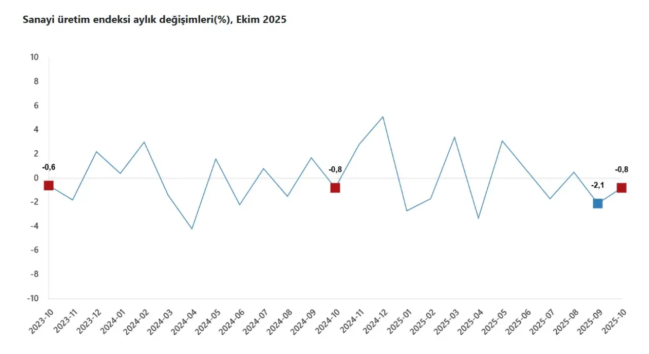 Sanayi üretiminin bir önceki aya göre %0,8 azalmasında ana etki imalat sektöründeki zayıflama oldu. Alt sektörlerde aylık değişimler şöyle gerçekleşti: