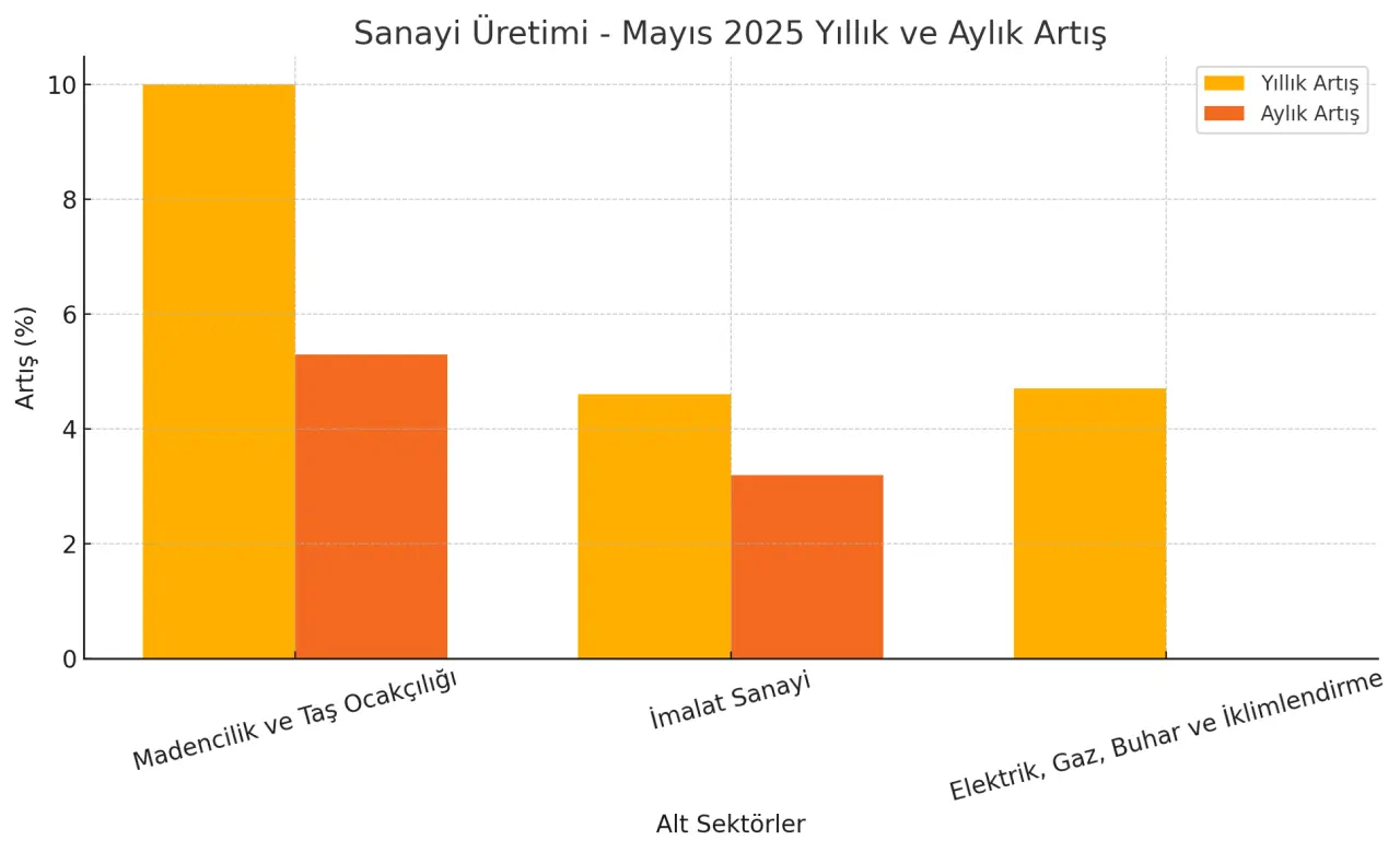 - Madencilik ve taş ocakçılığı: Yıllık bazda yüzde 10 artışla en güçlü performansı sergileyen alt sektör oldu.