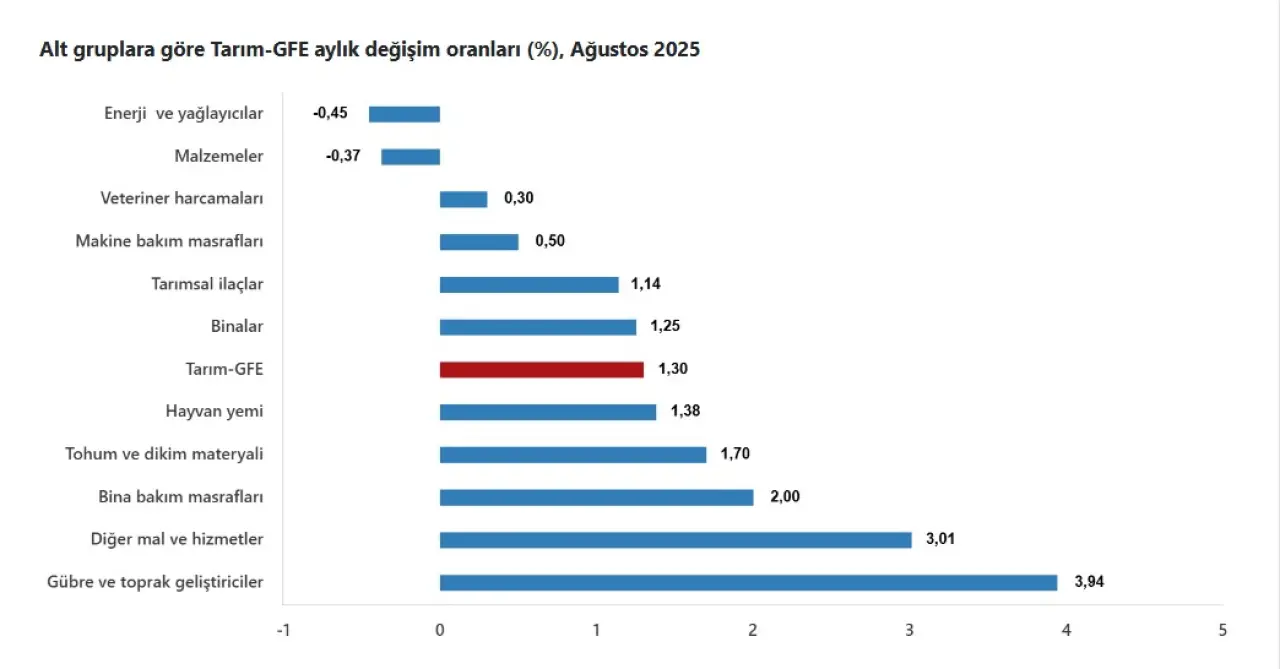 - Tarımda kullanılan mal ve hizmetler: +%35,07 (yıllık)