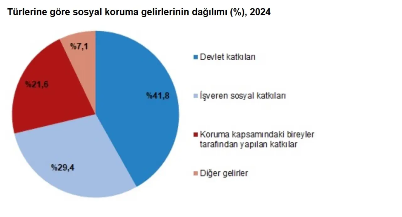 Sosyal koruma sisteminin finansmanında devlet katkıları başı çekti. 2024 yılında sosyal koruma gelirlerinin: