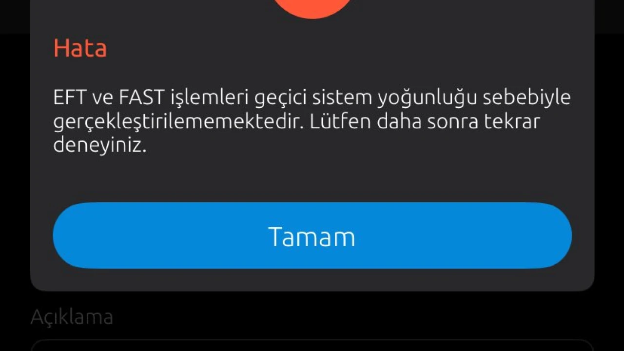Yapı Kredi Bankası EFT sorunu müşterileri son saatlerde EFT gönderme konusunda sorun yaşıyor. Bankanın mobil uygulaması üzerinden EFT yapmaya çalışanlar, "EFT ve FAST işlemleri geçici sistem yoğunluğu sebebiyle gerçekleştirilememektedir. Lütfen daha sonra tekrar deneyiniz" uyarısıyla karşılaşıyorlar ve işlem gerçekleştiremiyorlar. Banka henüz konuyla ilgili resmi bir açıklama yapmazken, kullanıcılar yaşadıkları sıkıntıları sosyal medya üzerinden dile getiriyor.
