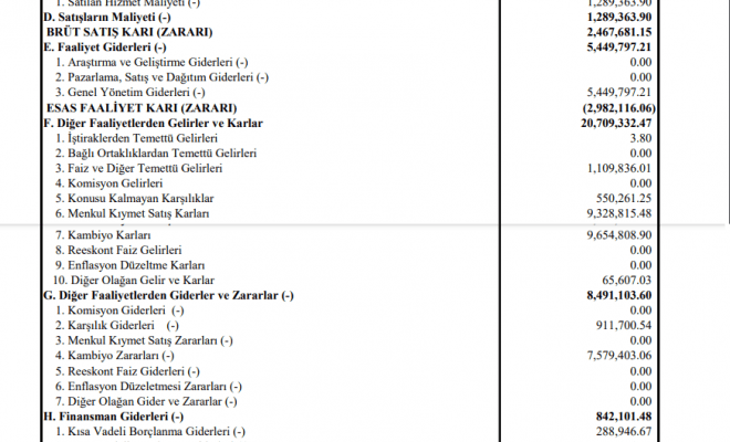 F. Diğer Faaliyetlerden Gelirler ve Karlar 20,709,332.47