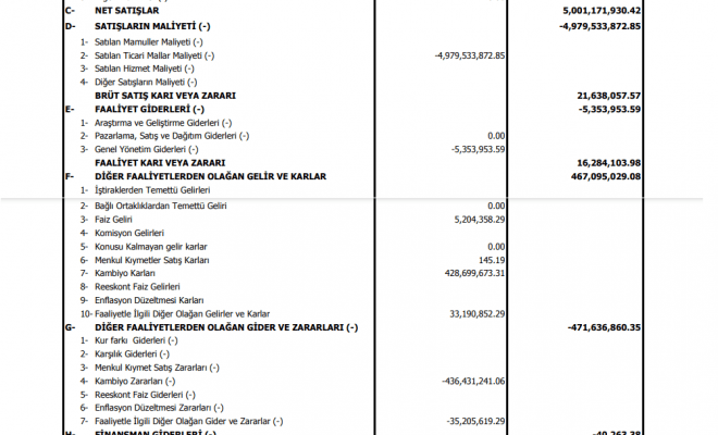 2- Satılan Ticari Mallar Maliyeti (-) -4,979,533,872.85