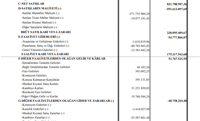 BRÜT SATIŞ KARI VEYA ZARARI 230.095.409,67
