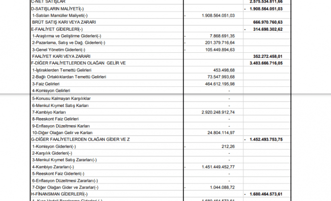 BRÜT SATIŞ KARI VEYA ZARARI 666.970.760,63